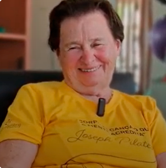 Eu comecei a fazer Pilates há 10 anos porque estava com muita dor e muito cansada. Não conseguia mais fazer as coisas do dia a dia, até pentear o cabelo era difícil. Depois que comecei aqui, as coisas melhoraram muito. As dores sumiram, me sinto mais forte e consegui fazer tudo sozinha de novo. Hoje, eu não largo mais o Pilates, é a melhor coisa que fiz para minha saúde.
